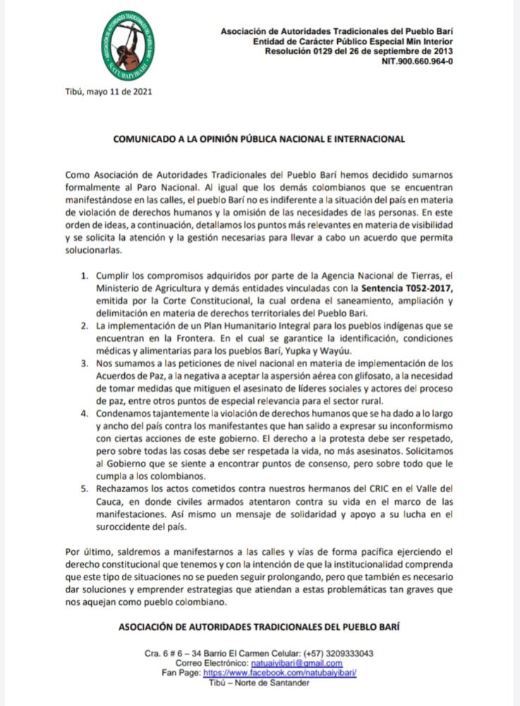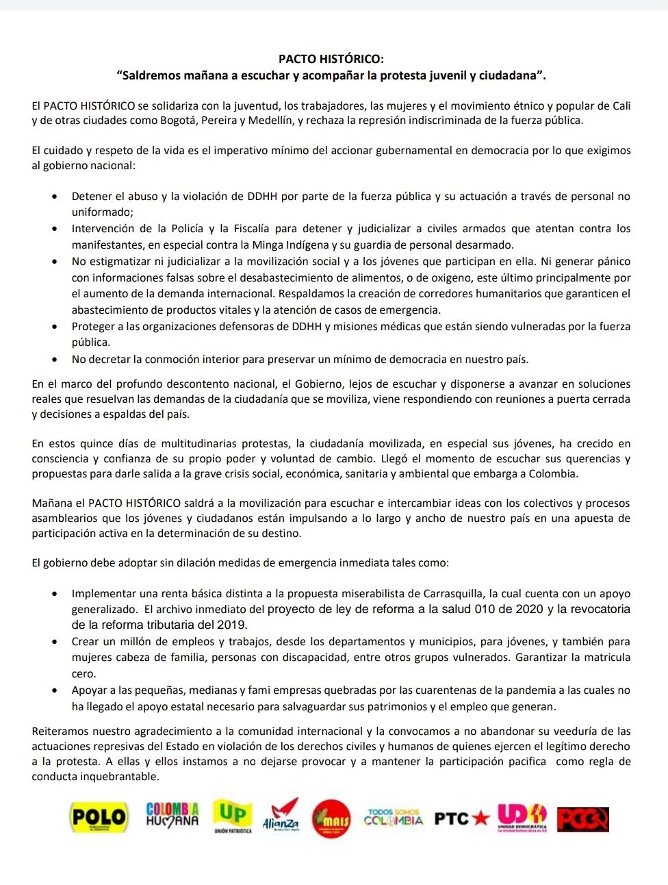 DECLARACIÓN POLÍTICA COMITÉ CALI Y VALLE DEL CAUDA 06 MAYO 2021